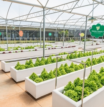 Espaço, que tem unidades no Centro Comercial do Ninho Verde II e no Plaza Santa Bárbara, permite colher a própria hortaliça fresquinha e levar para casa.