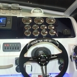 A Real Power trouxe sua lancha de 31,5 pés, com um detalhe que chamou atenção: a lixeira constituída por um tubo que leva tudo o que é descartado a um depósito situado no porão do barco.