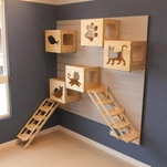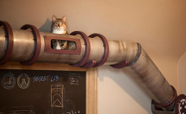 Uma dica para quem tem um bom espaço é distribuir caminhos feitos com madeira e suporte na parede, que parecem prateleiras. Isso ajudará a evitar que eles subam nos móveis da casa. Gatos adoram lugares altos e vão se deliciar com a aventura!.