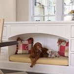 Cães ou gatos gostam de tirar aquela sonequinha entre as mil e uma brincadeiras. Camas embutidas na cozinha, no quarto e na sala resultam em um senso de estilo refinado ao ambiente. Além disso, o animalzinho ganha, em cada cômodo, um cantinho confortável para descansar.