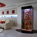 O Aquário também pode ser usado como divisão entre os ambientes, em vez de paredes. Incorporados a móveis, como mesas de centro ou estantes, podem ainda criar um efeito inesperado e de grande apelo estético no ambiente.