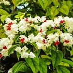 A lágrima-de-cristo é uma trepadeira de ramos longos de crescimento rápido, que pode ser encontrada em variedades com belas flores brancas e pontas vermelhas - Clerodendron thomsoniae - ou com flores vermelhas - Clerodendron splendens.