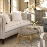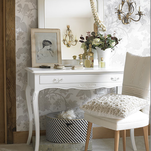 Os tecidos também contribuem para a ambientação. O toile de jouy (tecido de estampa francesa clássica) pode ser combinado com listras em cores primárias junto ao verde, lilás, rosa ou laranja.