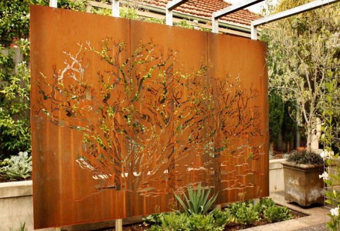 Também há a opção de comprar peças prontas, como objetos de ferro, escultura de um artista à escolha ou escultura lúdica, prezando sempre que elas estejam em sintonia com o estilo do seu jardim. Topiaria e jardins verticais, formando belas imagens artísticas, também são ótimas escolhas.