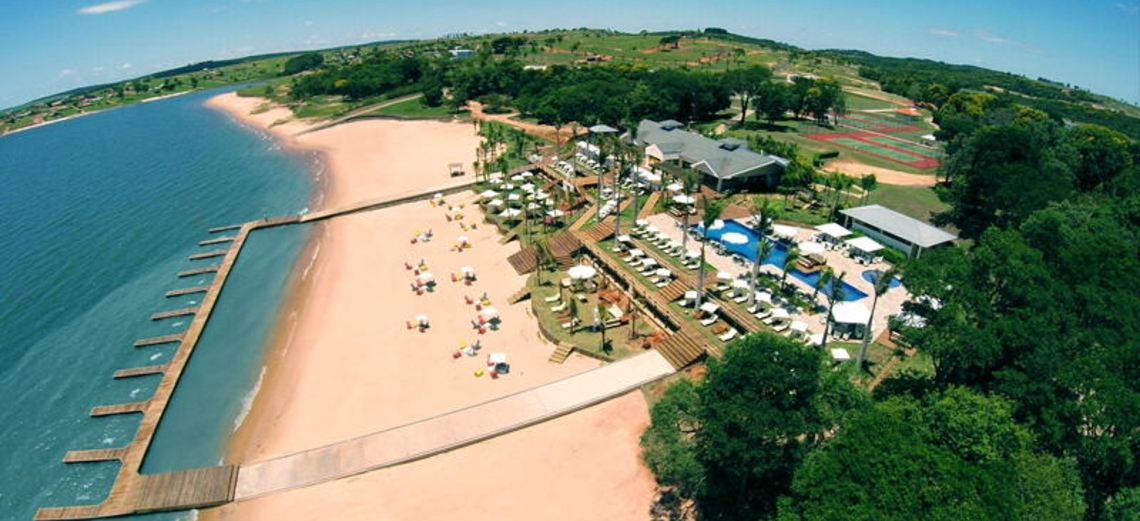 A área externa possui quadras esportivas, lounges na praia, espreguiçadeiras à beira da represa Jurumirim - que são um convite à contemplação da bela paisagem natural -, exuberante paisagismo e um deck que integra todo o complexo: o restaurante, a piscina, a praia e o novo píer. Em breve estará disponível para uso um espaço com sofás e fogo de chão, inspirado no conceito de lounge – ótima opção para bater papo com os amigos, ler e relaxar.