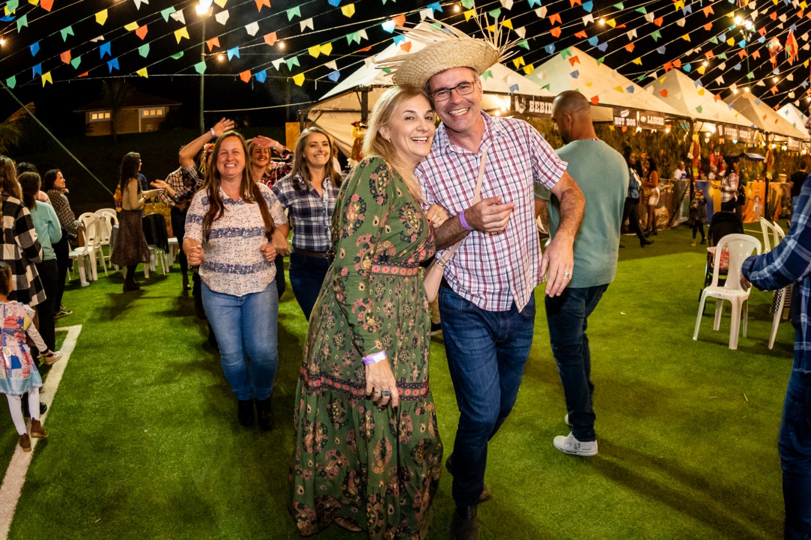 Fogueira. Quadrilha animada, com mais de 80 casais. Música ao vivo. Comidas típicas. Decoração caprichada. E claro, muita animação!