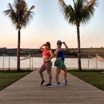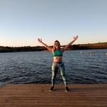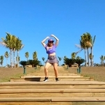 Instrutora grava seus vídeos da dança latina no empreendimento, em contato com a natureza.