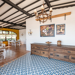 Um outro destaque do novo visual do restaurante do Clube Jurumirim fica por conta do piso da recepção, onde agora há um tapete formado por ladrilhos hidráulicos.