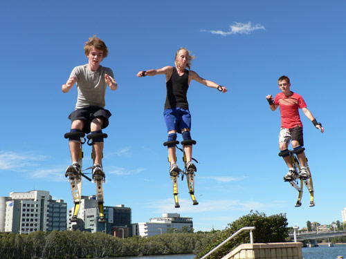 Trata-se de um equipamento munido de presilhas para os pés, cintas ajustáveis na altura dos joelhos e molas de fibras de vidro que permitem pular, correr, dar saltos mais radicais - para quem curte doses extras de emoção - e se divertir enquanto se equilibra e trabalha os músculos do corpo.