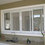 · Tela mosquiteira projetante: ideal para cozinha, área de serviço e banheiros. Com um sistema vai-e-vem, se projeta para dentro, tornando a limpeza e a abertura da janela práticas e rápidas. A malha é feita de fibra de vidro em um perfil de alumínio discreto.
