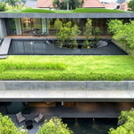 Invista em elementos sustentáveis no seu projeto, como os telhados verdes, que além de beneficiar o meio ambiente e o seu bolso, também conferem um diferencial paisagístico incrível.