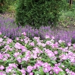 Plumbago, érica, manacá, lantana lilás rasteira e azulzinha.